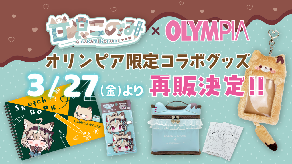 大人気VTuber甘狼このみさん×オリンピア コラボグッズ 再販決定!